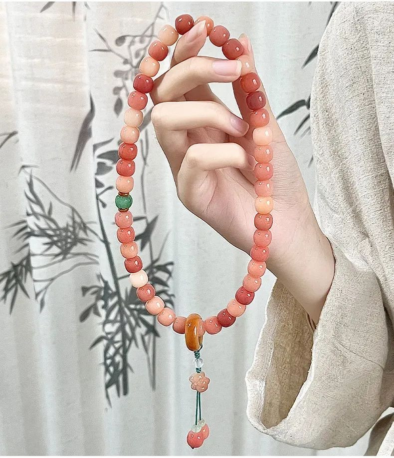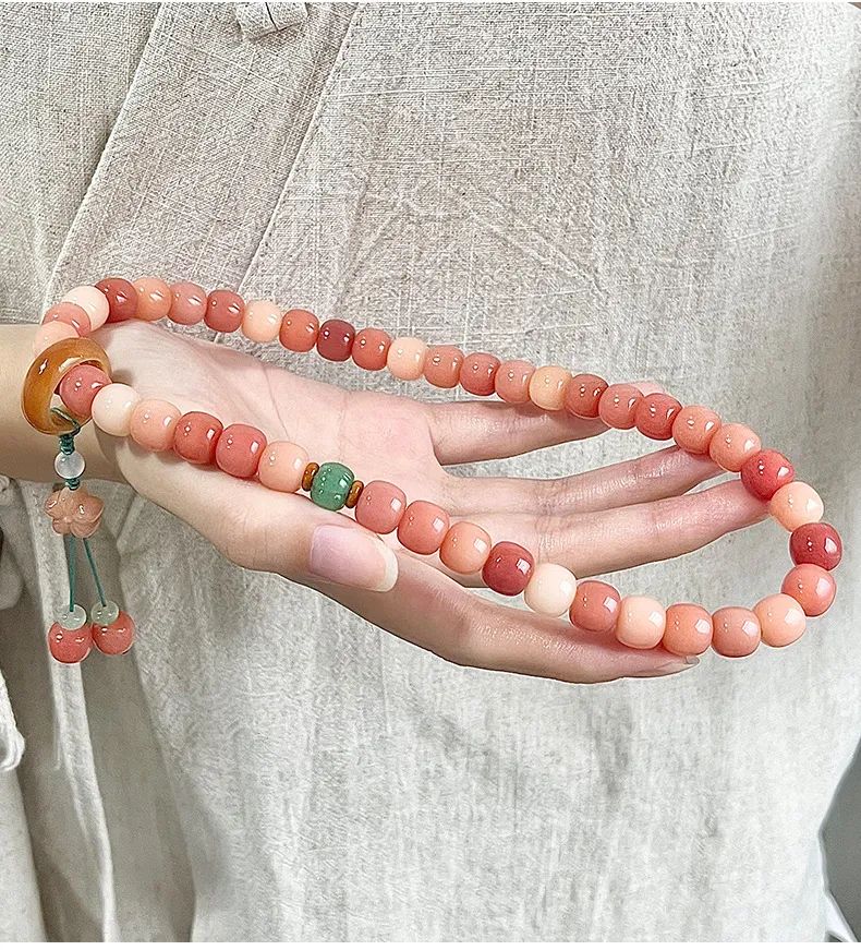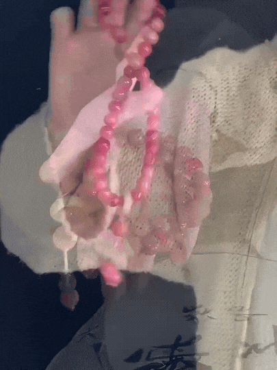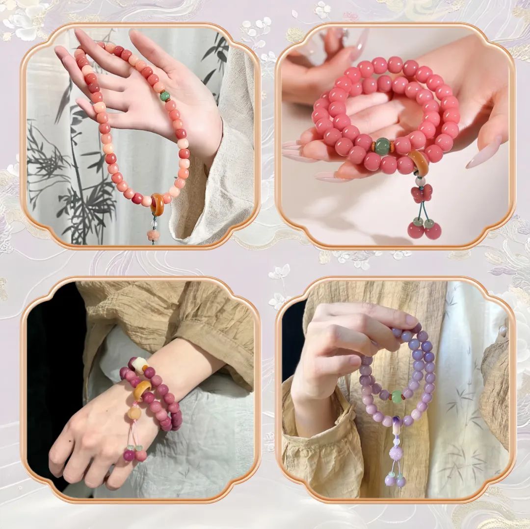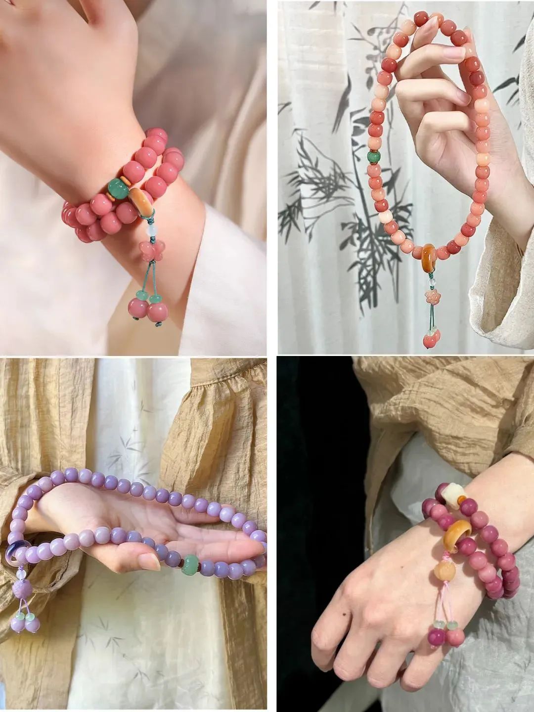 参考了冰润基底+隐现红韵的宫廷配色,似将清甜活力注入腕间,把那种淡淡的温柔感都盘进串里,越看越喜欢~
