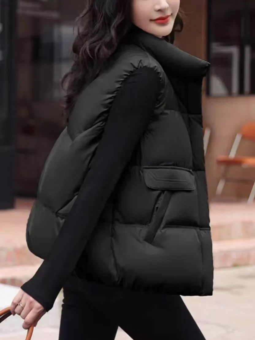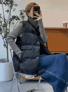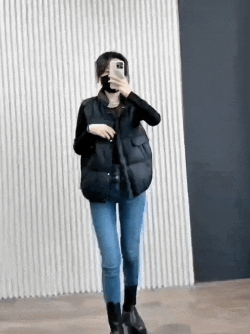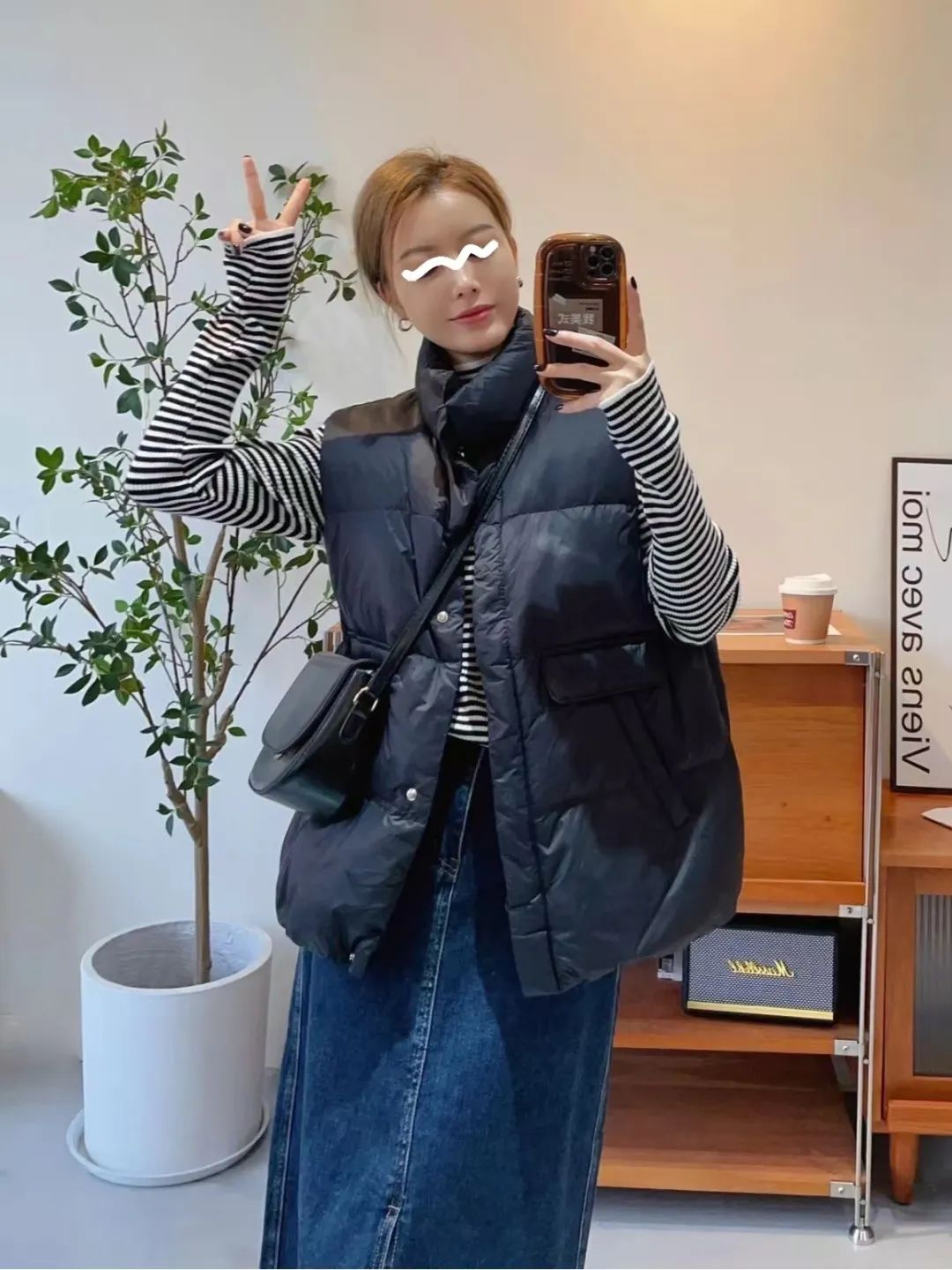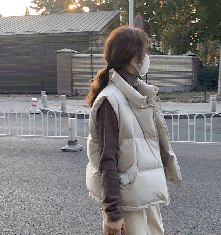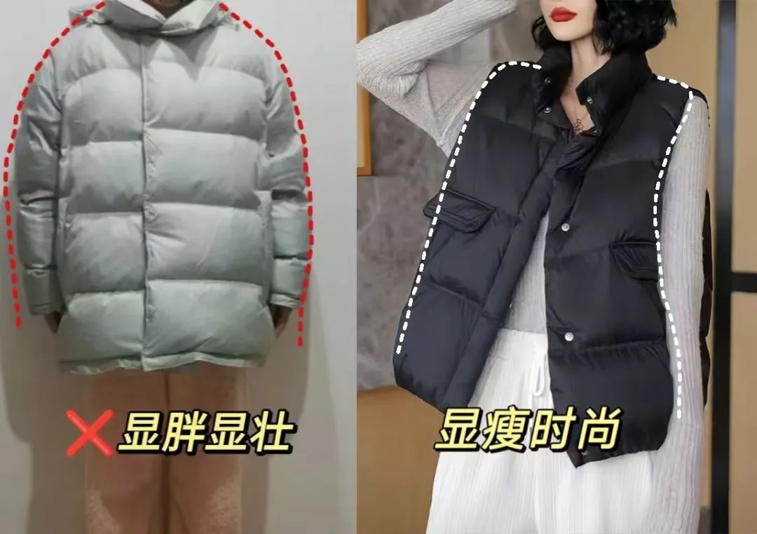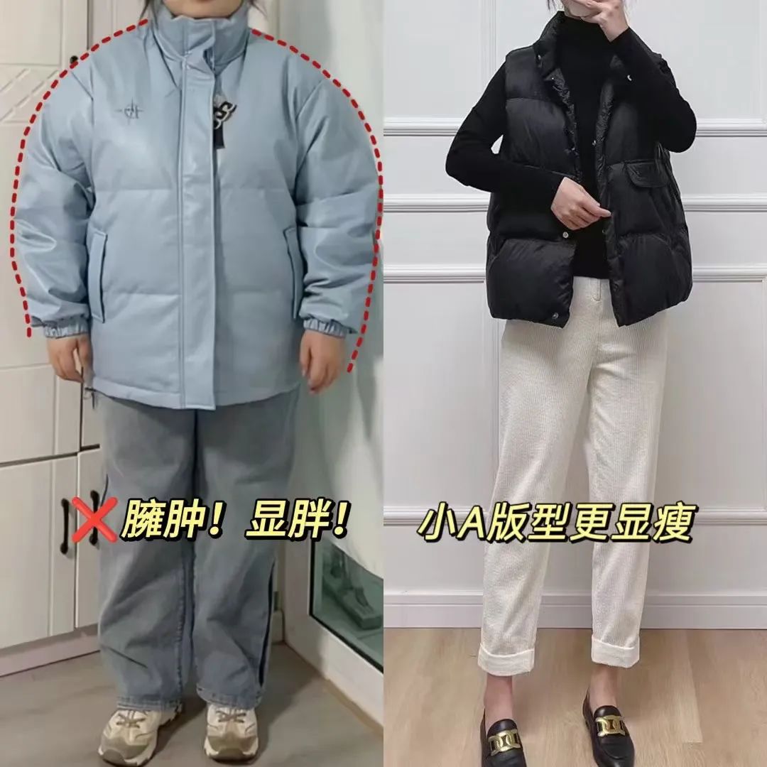 没有了袖子的束缚,上身不显臃肿,和大棉服一比,显瘦5、6斤。