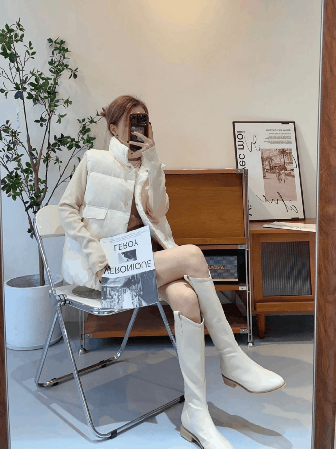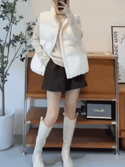 搭配长筒靴、半裙,又是另一种气质,很有知性女人范。