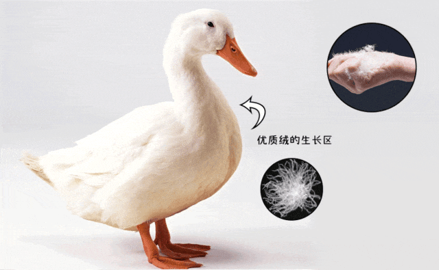 特别甄选优质蓬松白鸭绒,取自鸭腹柔软细白的大朵绒,鸭子常年泡在水里,就是靠着这一身羽绒保暖、锁温的部分。