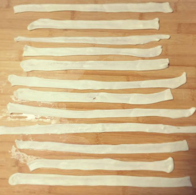 2、将面团改成14个面挤子,后搓成圆条刷点油,醒半个小时;