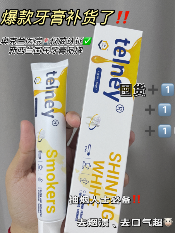 今天就给大家推荐小编自用款:新西兰原装进口——telney拓乐尼牙膏,专门针对吸烟人群打造,主打去烟渍!