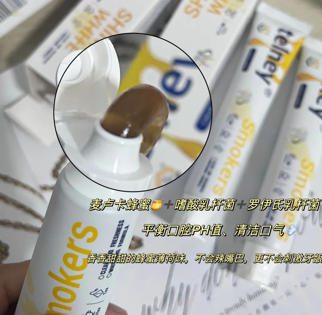 拓乐尼烟民牙膏,添加了新西兰国宝成分——麦卢卡UFM15+蜂蜜。