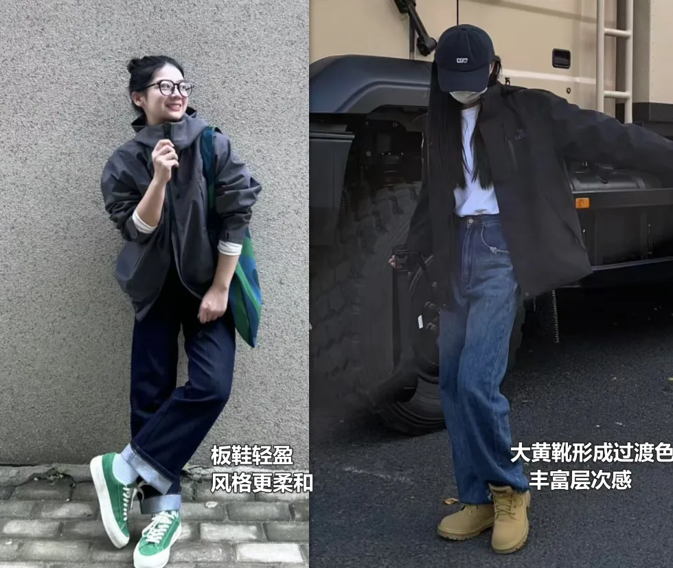 酷酷的工装裤/运动裤+冲锋衣,再来一双老爹鞋,松弛又酷帅,走在路上我都忍不住回头看两眼!