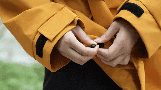 内胆是松紧袖口,外壳袖口还设计了魔术贴袖袢,一收口就能挡住外面的冷风。