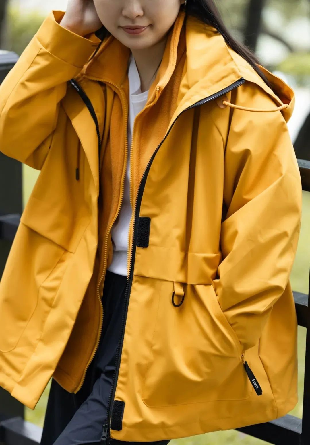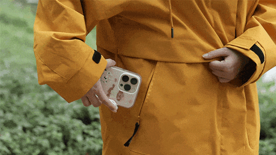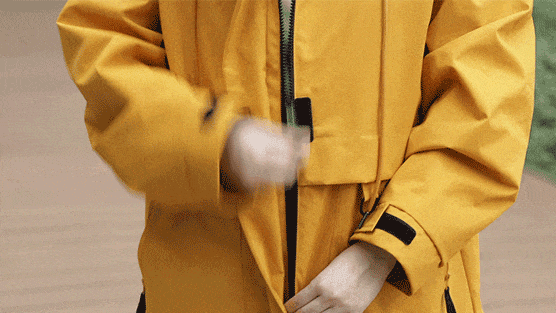 衣下摆还有隐形弹力抽绳,拉紧不仅能避免灌风着凉,还能调整版型。