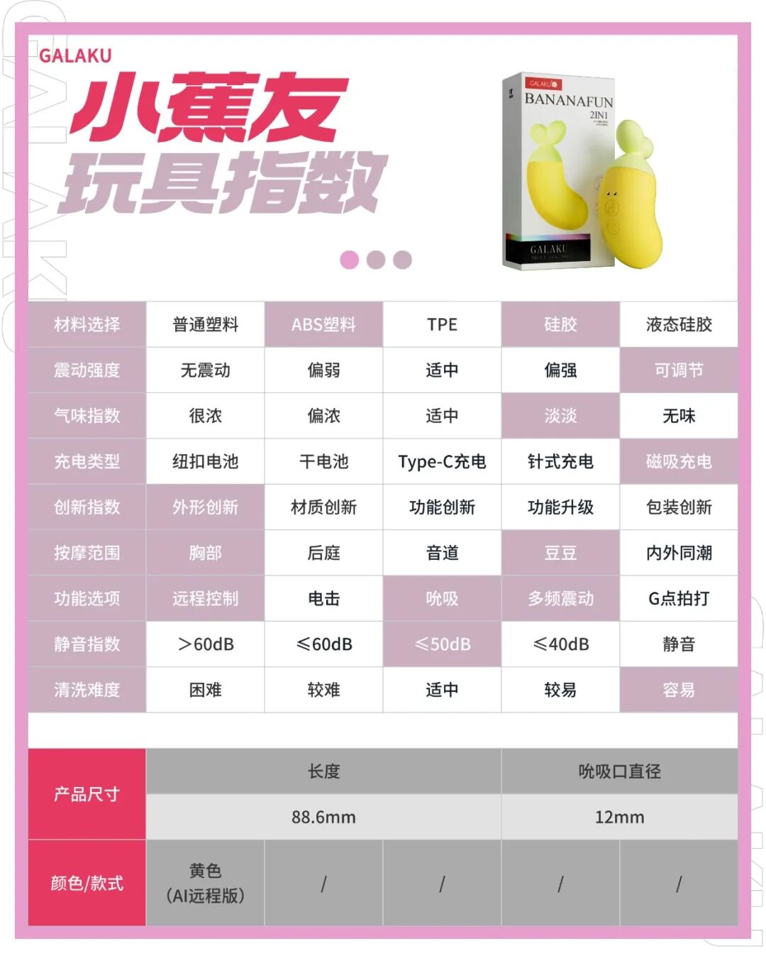 2.充电时长:小蕉友充电约80分钟可充满,使用时长约70分钟(具体使用时长取决于您选择的模式和频率);