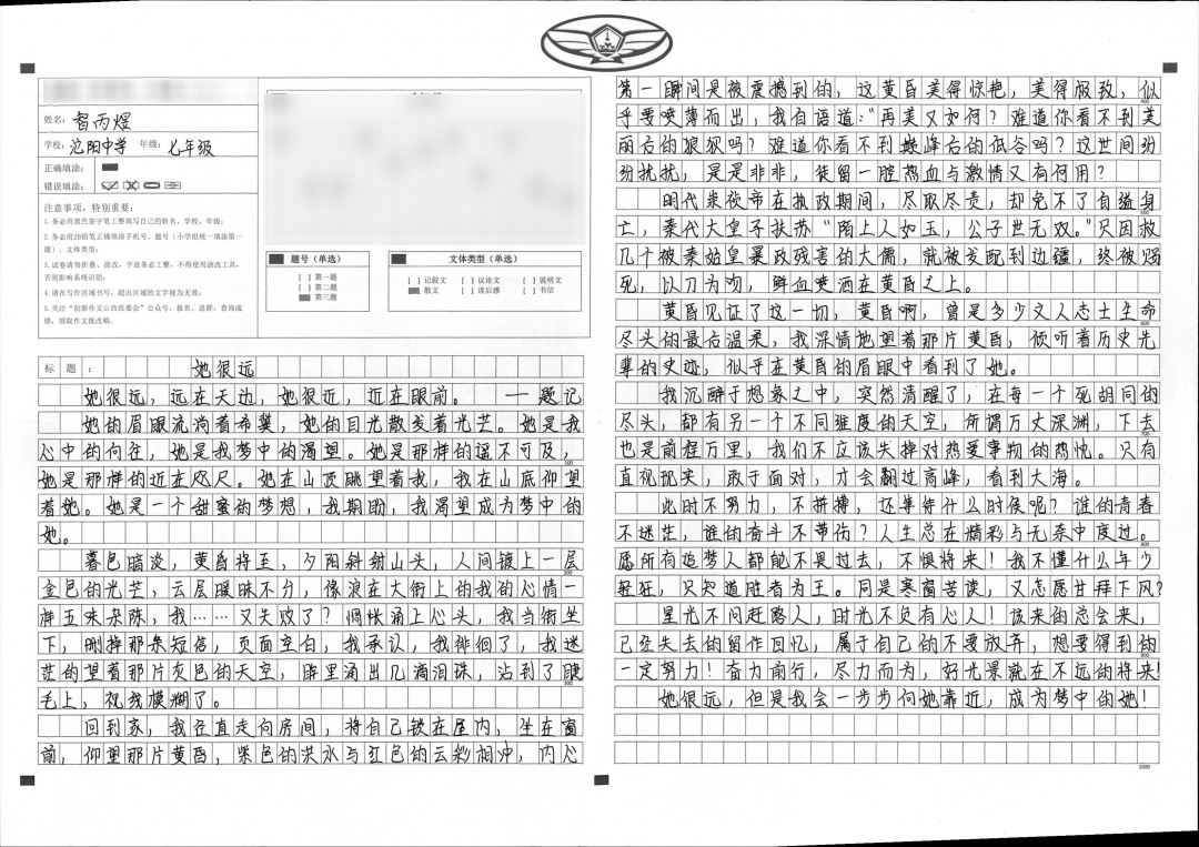 我认为写文章是传递思想的,以自己的文笔感触述说出最流畅动人的情感。这个题材让我不禁回想起十几载来的喜怒哀乐、以自己对如今的感慨与对未来的憧憬与激励作为内容、注入真情实感、以流利而真挚的语言表达出来,让自己的情感洋溢其中。我想这就是我该写的。只要思想中富含着新的希望,那这样的思想永不会熄灭,只会愈发坚韧,一直给自己增添信心与警示。