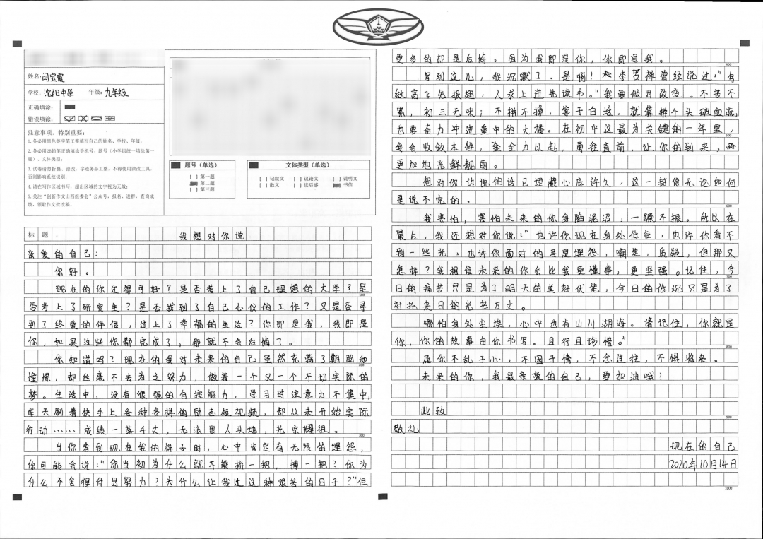 这封信可以说是给过去自己的一些劝慰,我把时间划分为线段分发给不同阶段的自己,竭尽所能让他趋于完美,满满的都是对自己的祝福。