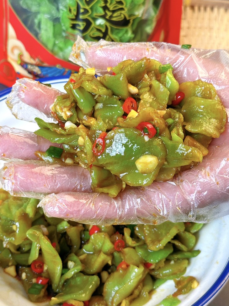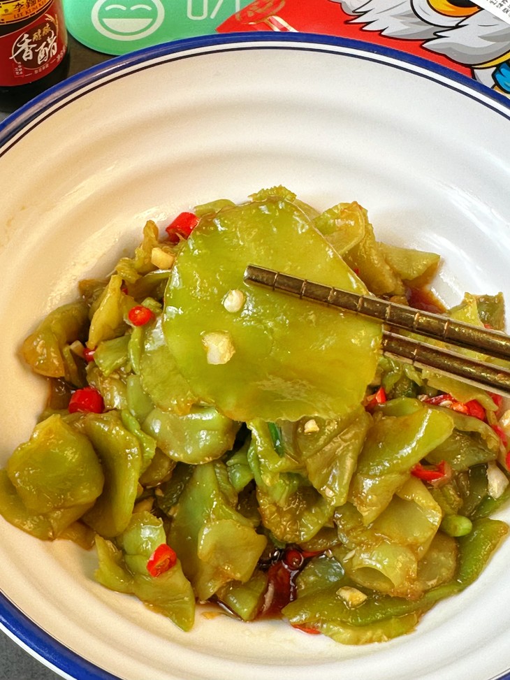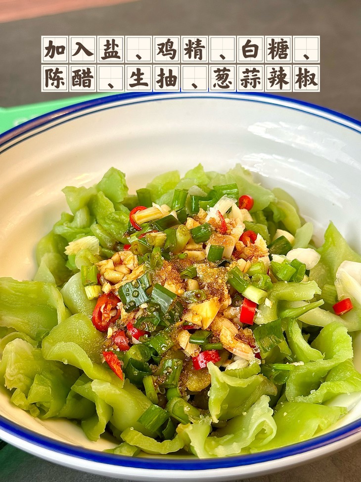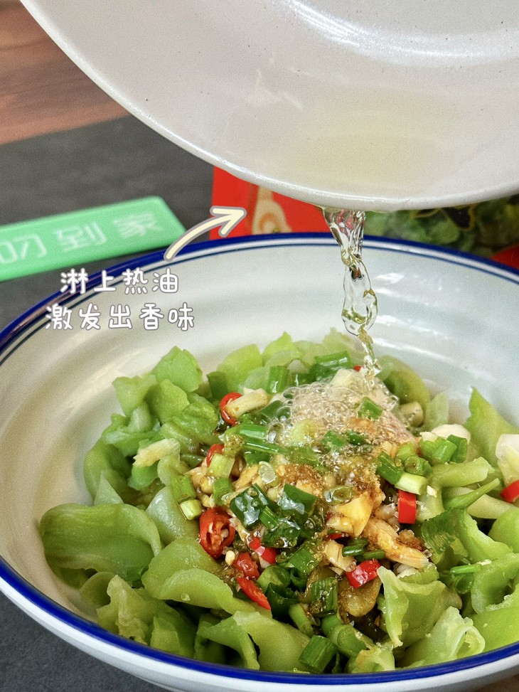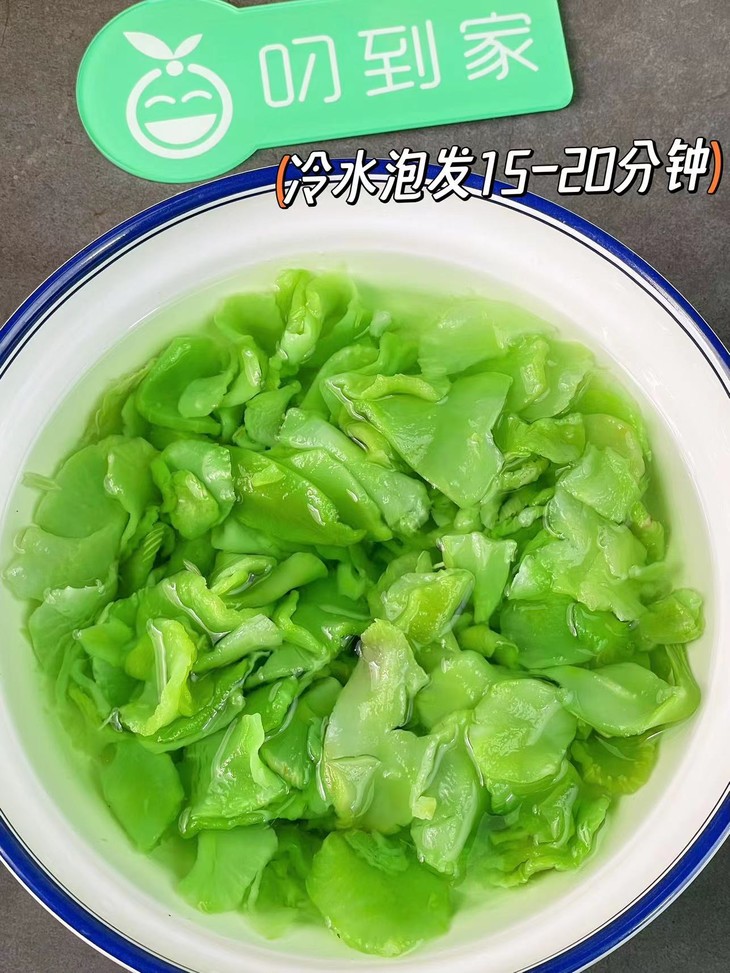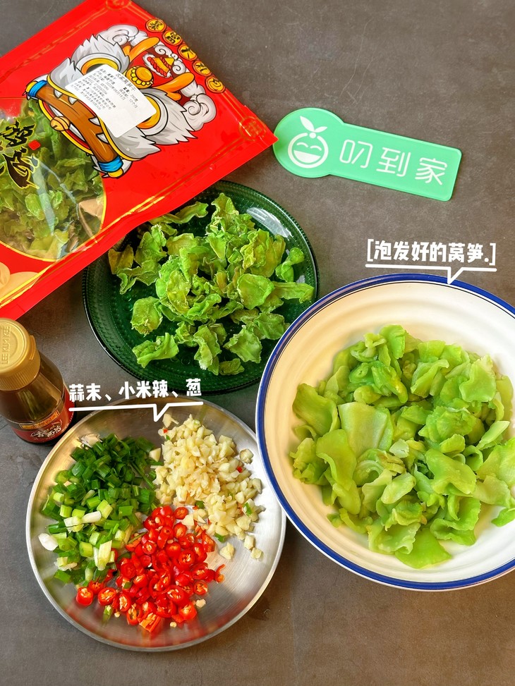 泡发好的莴笋干,用手挤干水分,切片好了很方便,倒入准备好的配料,最后淋上热油激发出香味~用手抓拌均匀