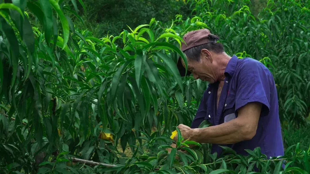 行走山岭中,奇特的沿海山岭地带,带来别处可望不可及的优越降雨量,并在生长于沙砾土壤上的桃树间形成一条条清澈的山间活水,以及让人恍然间以为身处幻境的缭绕云雾,加上向阳面的果林常年拥有的充足日晒和足够的昼夜温差,汩汩而出的甘冽清甜由此酝酿。