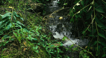 奉化玉露水蜜桃果园中流经的山涧溪流
