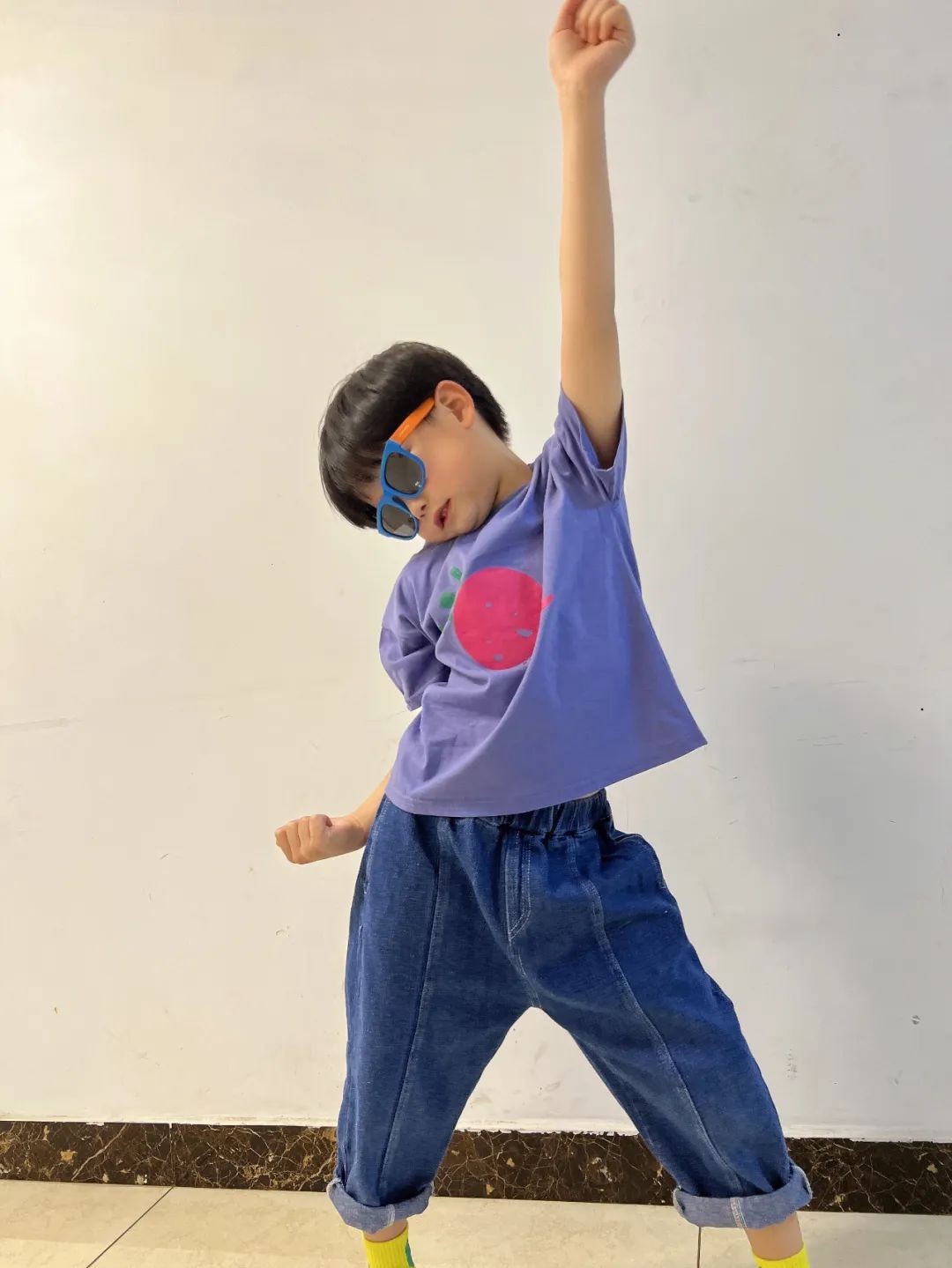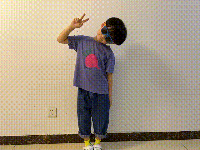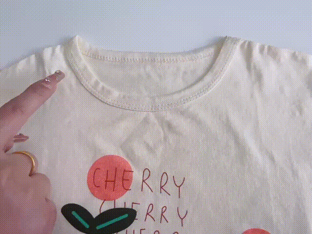 这款T恤弹性刚刚好,能够包容孩子们的大幅度动作,袖口、领口都具备一定的宽松性,不会有紧绷感。