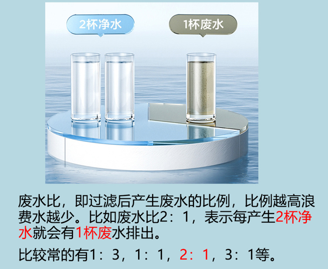 废水比是出一杯清水和产生废水之比,2:1就意味着2杯清水产生一杯废水。