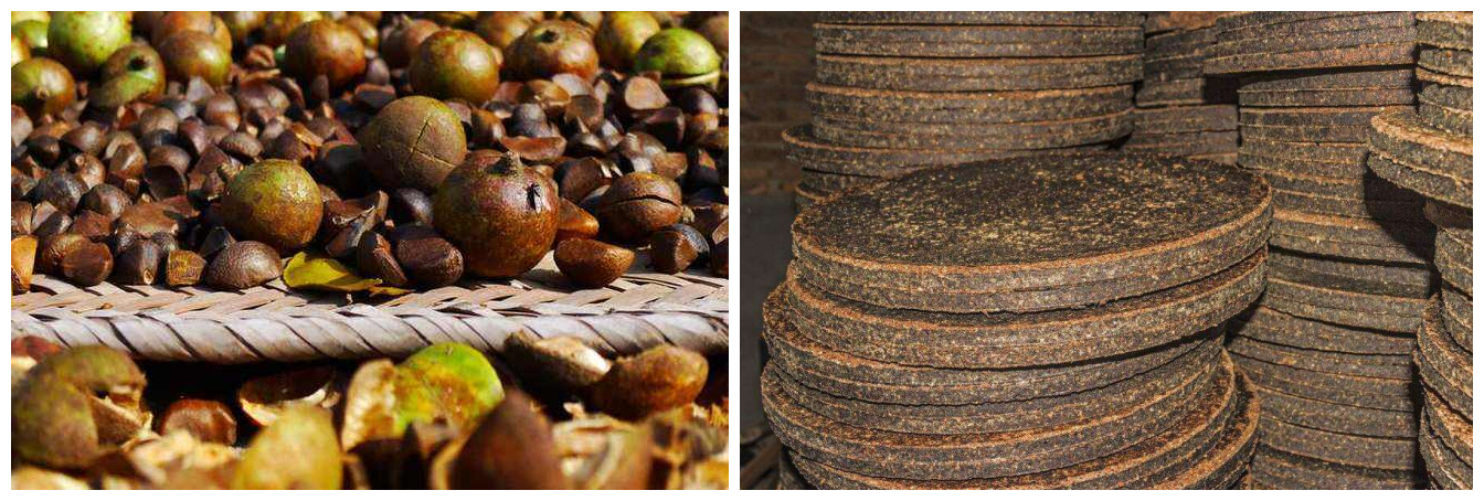 可能很多人对茶麸成分不了解,其实茶麸是茶油果压榨茶油后剩下的部分。