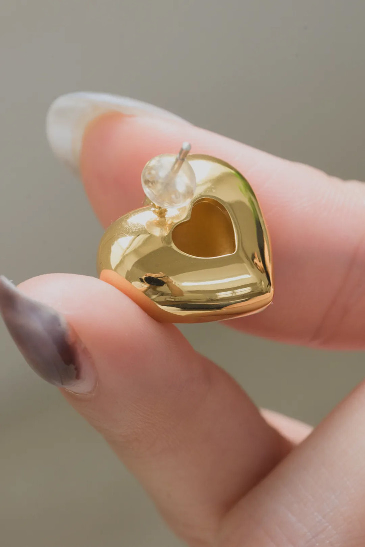爱心全家桶的最后一员,爱心耳钉❤!依然是明星同款。心形胖乎乎的,光泽感很够,戴上耳朵视线瞬间被转移~