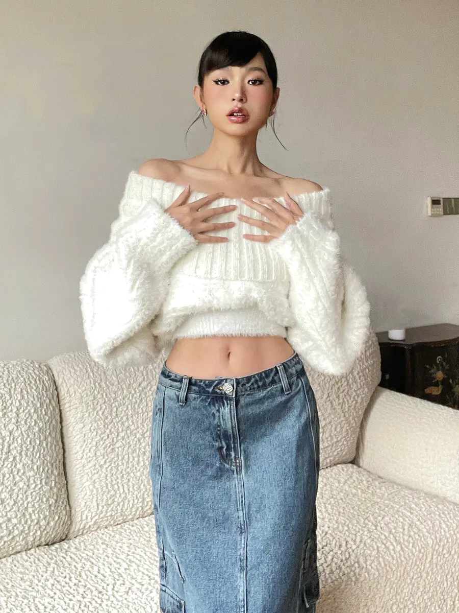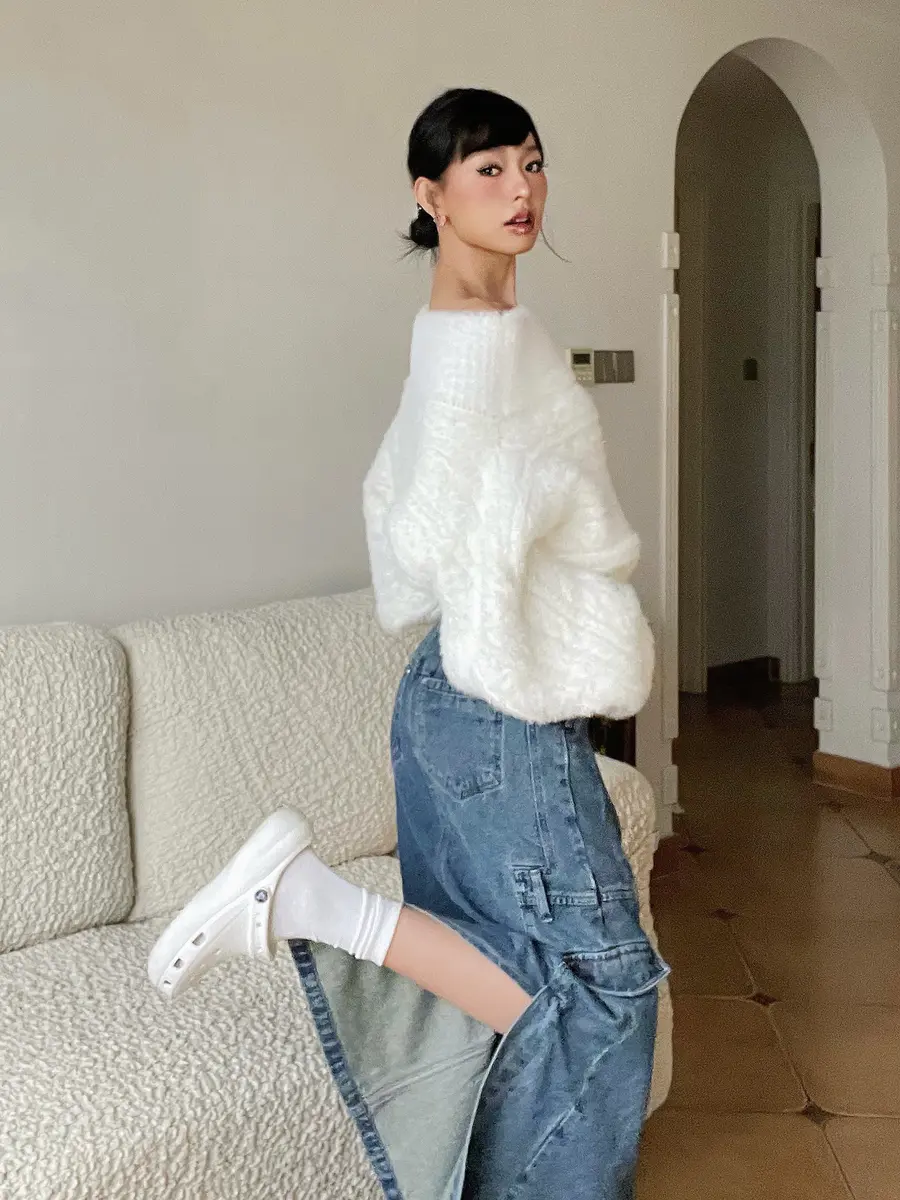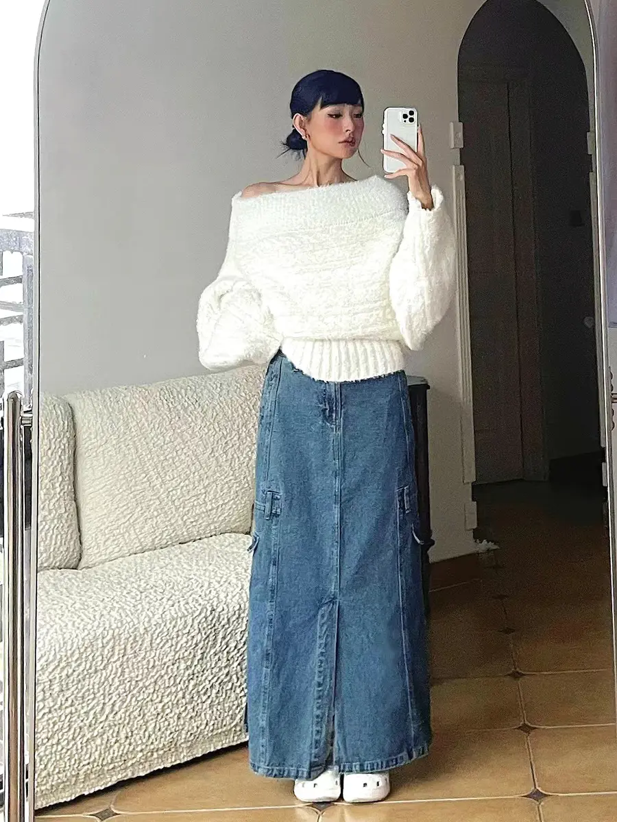 开衩牛仔裙☕️一键冬季显瘦氛围感
