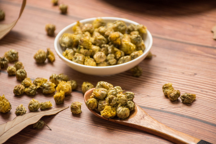 菊花味苦、甘,性微寒,归肺、肝经。具有散风清热,平肝明目,清热解毒,滋养肝肾的功效。对于风热感冒、头痛眩晕、目赤肿痛、眼目昏花、疮痈肿毒等,均有较好的疗效。