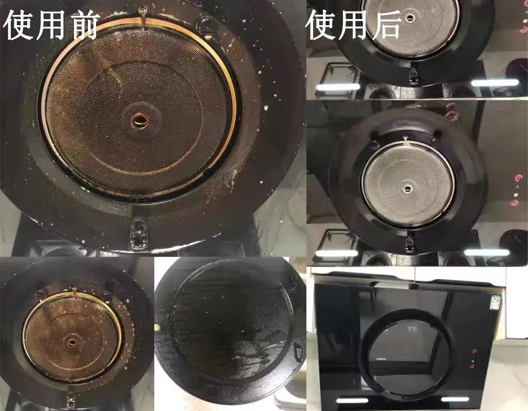 油烟机上厚厚的陈年油污,哗哗哗的剥落太爽了,平时需要2个小时才能洗干净,现在10分钟搞定。