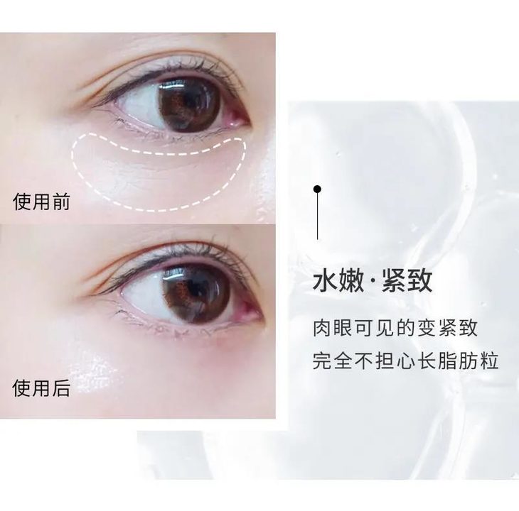 有黑眼圈、鱼尾纹、泪沟纹和眼袋困扰的姑娘可以搭配眼霜一起用,用完眼周水嫩饱满,肉眼可见的在变紧致,完全不用担心长脂肪粒。