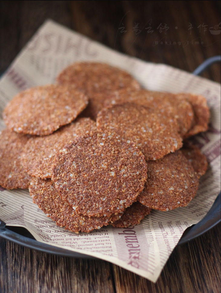3、将搅拌好的面糊摊开,用手压薄,尽量压薄一点,烤出来口感才会更脆。