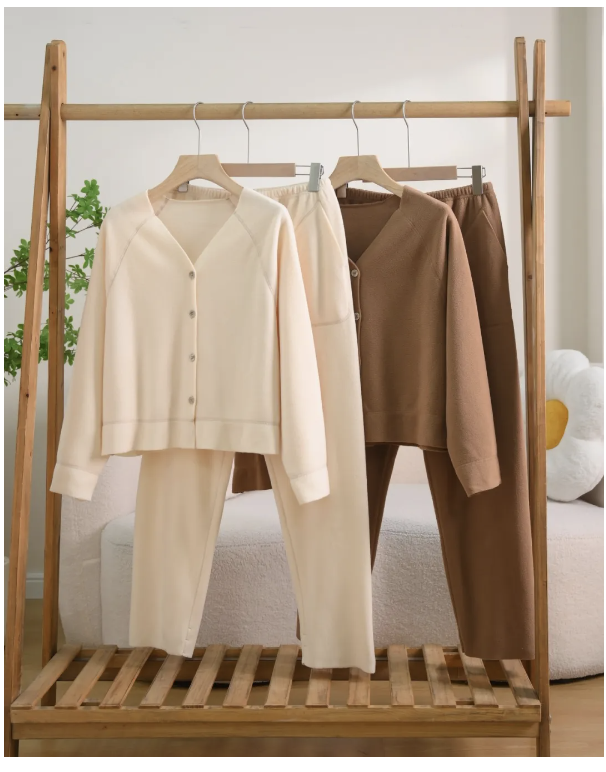 闭眼冲,很舒服,关键不挑身材、不分年龄,一套可以穿3季,天气越冷越能感受到它的好~归根结底,都是因为本身面料不行,只能靠厚度来蓄热。穿着它睡觉,肌肤被四面八方柔软的面料包裹着,就像置身于柔软的小熊身上,轻轻柔柔,一触难忘。 这款居家服 摇粒绒绒面短而密,形成厚实保温层,锁定更多热气,同时也更有包裹感。 保暖性不输普通珊瑚绒、法兰绒!哪怕在北方穿,也能快速升温,身体暖感直线上升。 普通居家服,每次从“热气腾腾”的浴室出来,没过多久温度就开始下降,全身冷飕飕。而这款亲测过了一个小时都没有变冷, 始终稳定在人体蕞舒适的温度。像咱这种天生怕冷星人,选冬天的居家服都是要经过精挑细选。这款可以拍着胸脯说: 是我目前穿过蕞保暖舒适的一套。把毛绒面料透风的毛病从根源上解决,哪怕是下楼拿快递,也不怕冷空气趁虚而入。有xiao抑制 金黄色葡萄球*菌、 大肠杆*菌、 白色念珠*菌。除此外,由于 摇粒绒特殊的纤维架构,使其拥有良好的透气性。穿起来暖而不闷,冬天身体捂出汗时,也能快速将汗水排出,保持干净舒爽的体感。在干燥的环境下,碰到别的东西也不容易被电到,大家真的可以放心穿!以前在南方家里过冬,全靠室内取暖器和厚实的被子过冬。现在穿上这一套,就能舒适过冬。而这款美拉德摇粒绒居家服兼具保暖的同时,版型还相当在线!就这一套,日常穿去 拿快递、丢垃圾、甚至是溜狗都ok!微微露出颈部肌肤,能从视觉上延伸肩颈线条,更显修长,还能显脸小。而且它还特意在肩部增加肩部线条感, 转移视线,视觉显肩瘦。随意拉扯都不易变形,不紧绷,慵懒舒适,对身材包容度真的很高。版型ju显瘦!一件上身, 把胯宽、大粗腿等缺点通通隐藏掉。显瘦又显高,办公室好几位女同事试穿后都直接入手了!平时放手机、放钥匙都很方便,冬天冻手冻脚时还能双手插进兜里,安全感十足。前面也介绍过了,棉月为不少大牌代工过,所以质量做工不会差到哪! 经过我们实测: 无论怎么用力揪都不会掉绒,缝合做得很紧密。结实、耐穿、显质感治愈,也没有突出线头磨皮肤,穿着跟更舒适。 面料一点也不娇气, 用剪刀使劲剐蹭,没有勾丝的情况,很是耐造。心意首次下水浸泡半小时,也没有见到脱色问题,色牢度很高。都是很适合秋冬贯穿得,美拉德色系,温柔、慵懒、法系氛围感拉满。两个尺码可选: L码和XL码!95-150斤的女生都能穿。这个价格能做到这个品质,在同等质量的居家服里,可以说买到就是赚到!来看看某宝同款版型同款质量, 一件售价,折扣后都还要199元/套,关键是还卖得特好!而我们和品牌一直都有合作,所以这次给到的价格非常优惠: