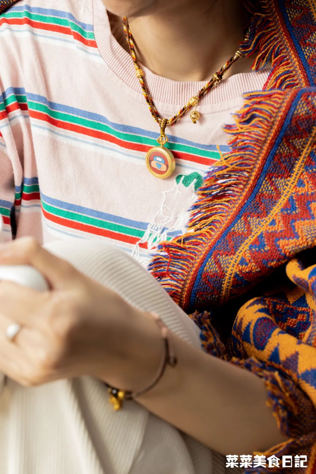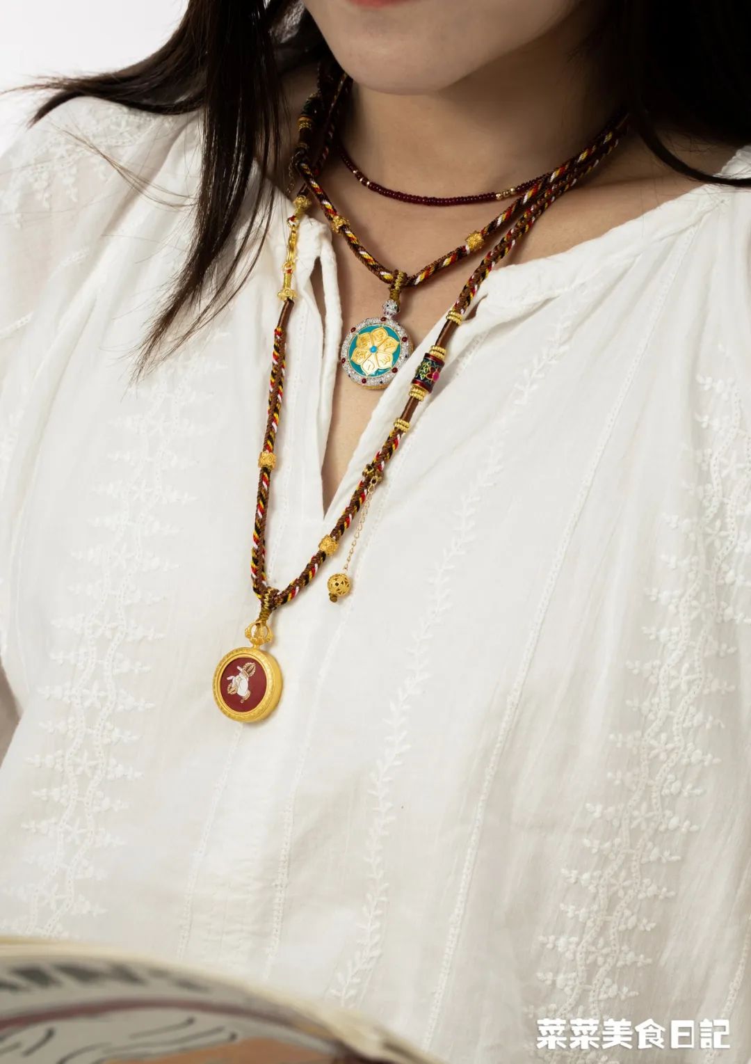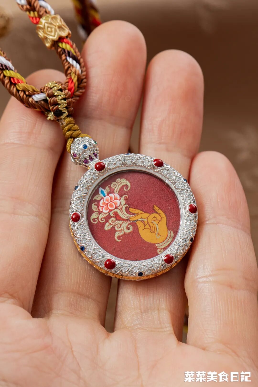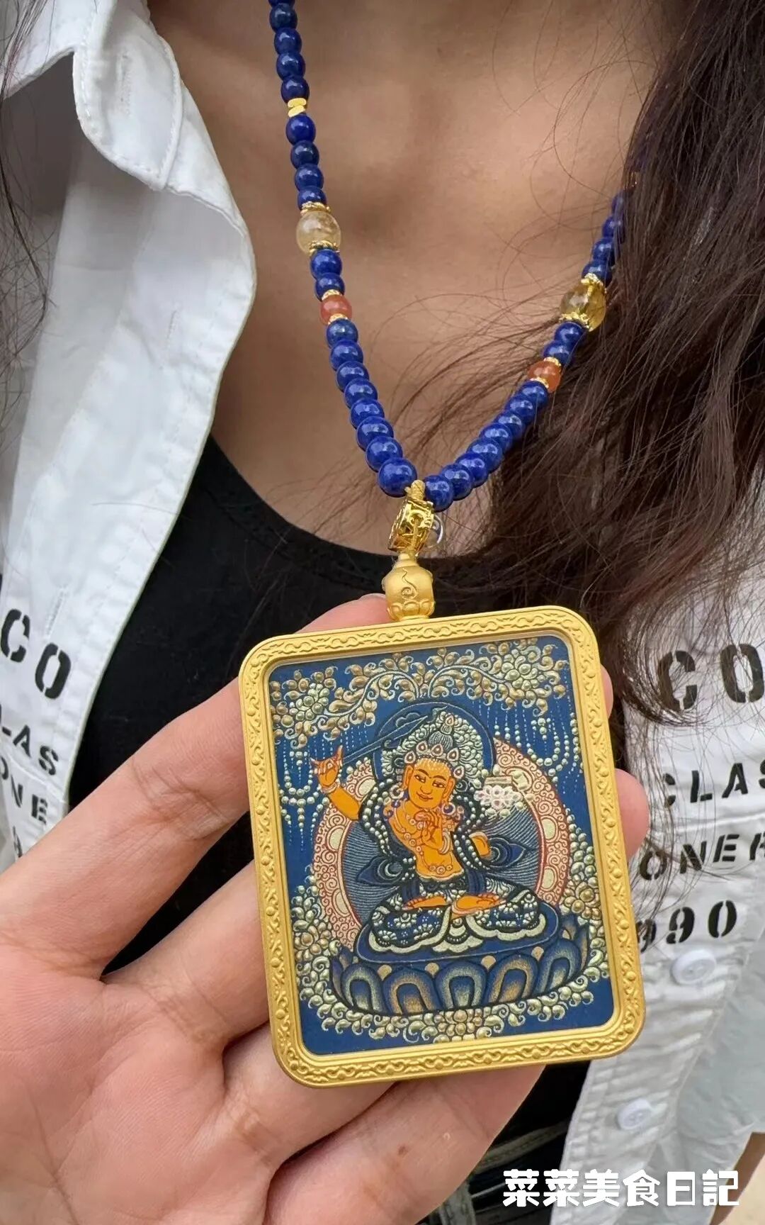 菜菜的想法是,这条唐卡,咱们日常作为一个配饰也很好看,又比一般的配饰多了一重美好的祈愿,何乐不为。