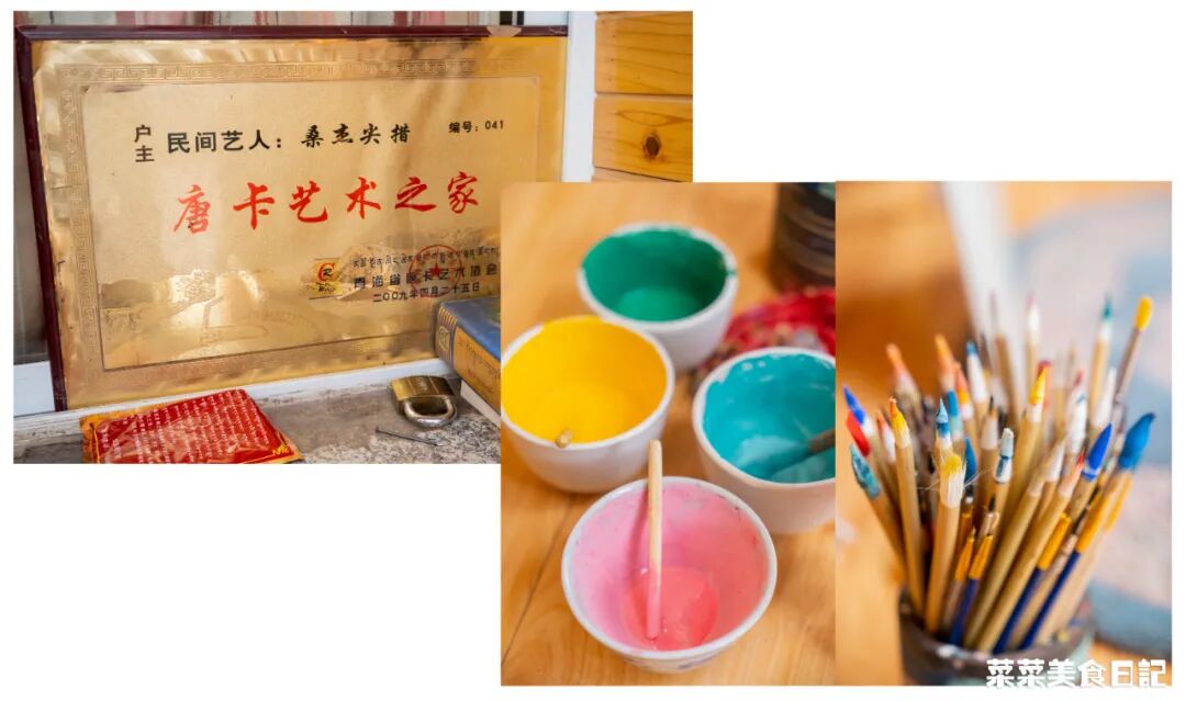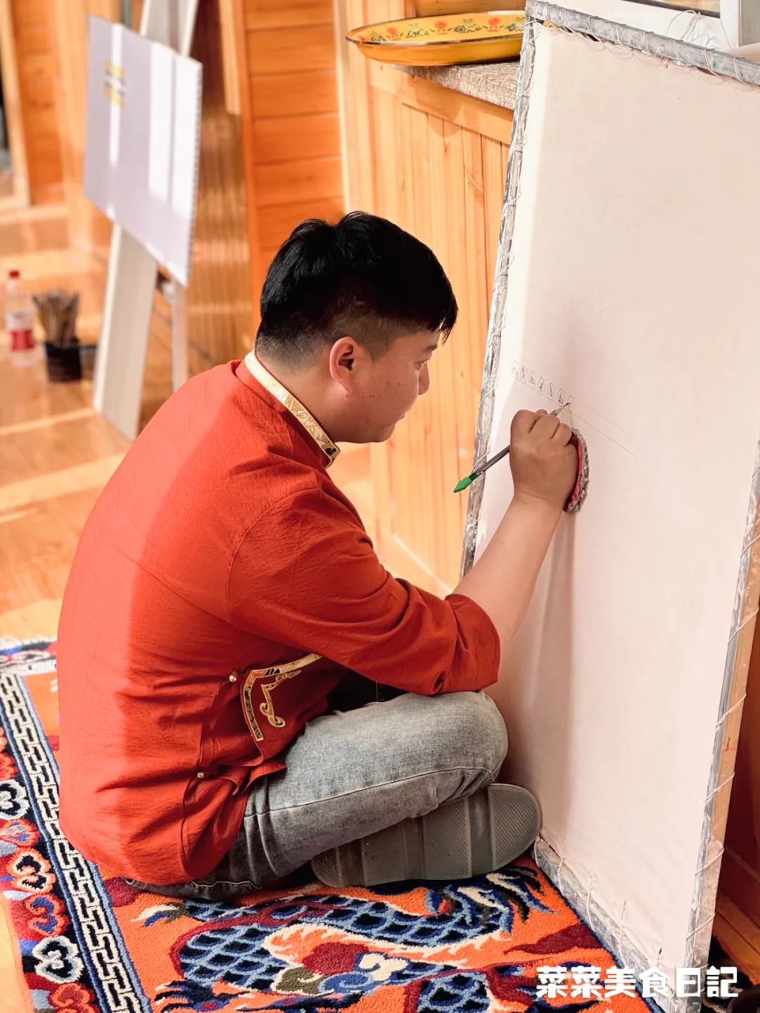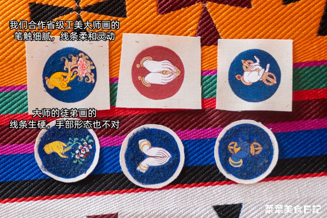菜菜定制唐卡,从颜料研磨到画布制作、再到绘画,都是由师傅遵循古法,独立完成,一笔一划都经不起偷工。