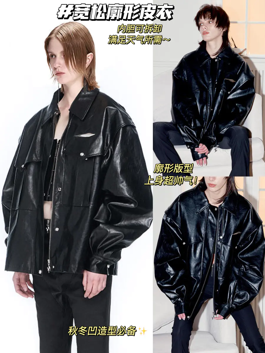 @宽松廓形皮衣外套