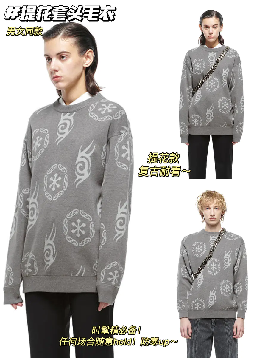 @提花套头毛衣