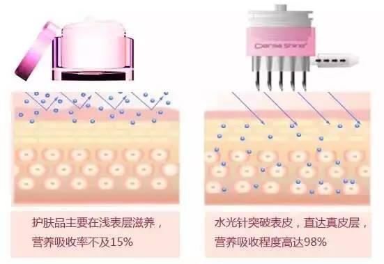 和护肤品涂抹对比,注射水光针的吸收程度,可以高达6倍以上!