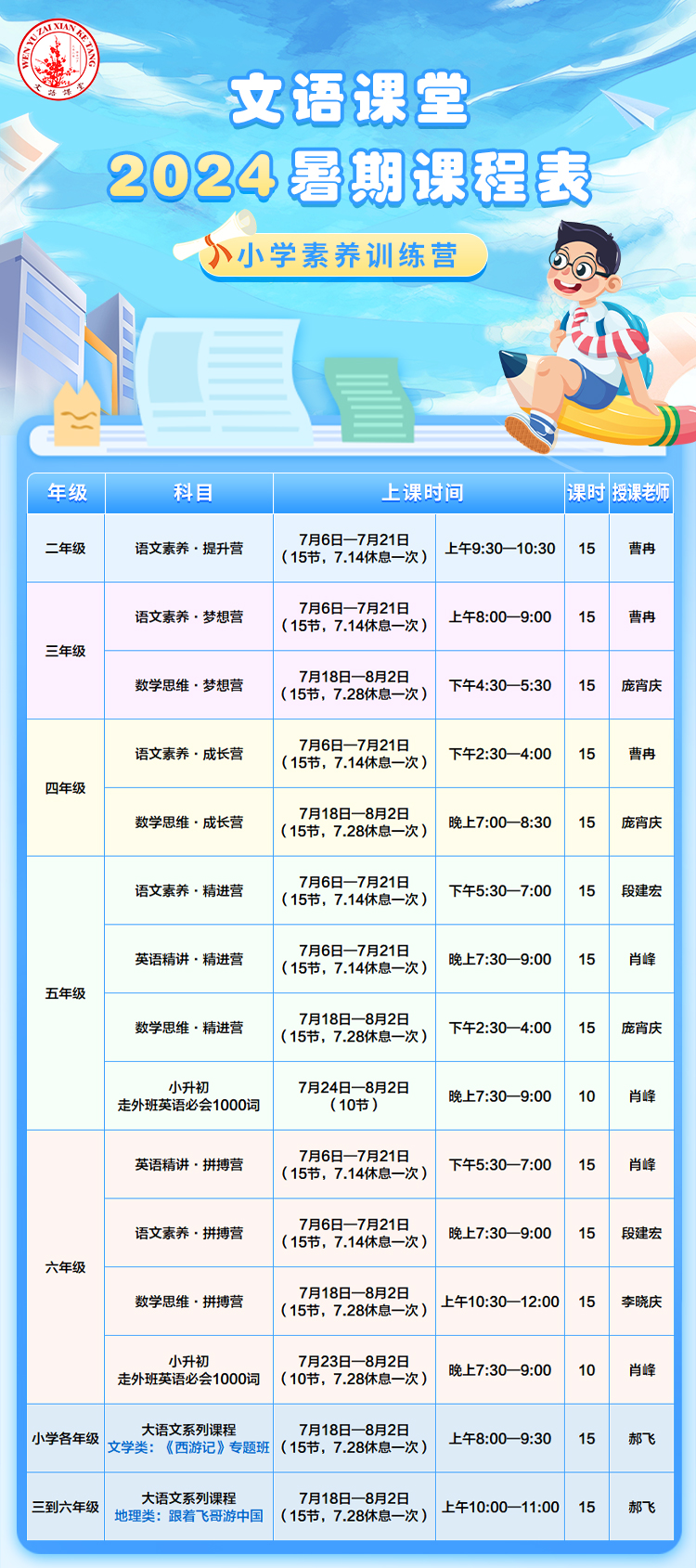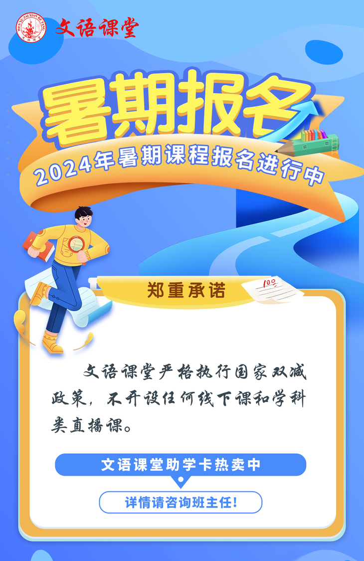 文语课堂暑期课程继续严格执行国家“双减”相关政策,不开设任何年级、任何形式的线下教学,请社会各界监督!