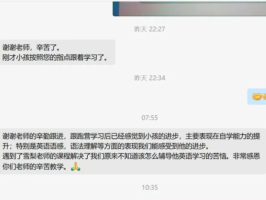 目前这两个系统课已经在学员中落地实践一年多了,帮助数万孩子实现英语蜕变——迅速补上落后的差距,顺利衔接校内课程,赶上甚至完全超越一线城市的孩子们。