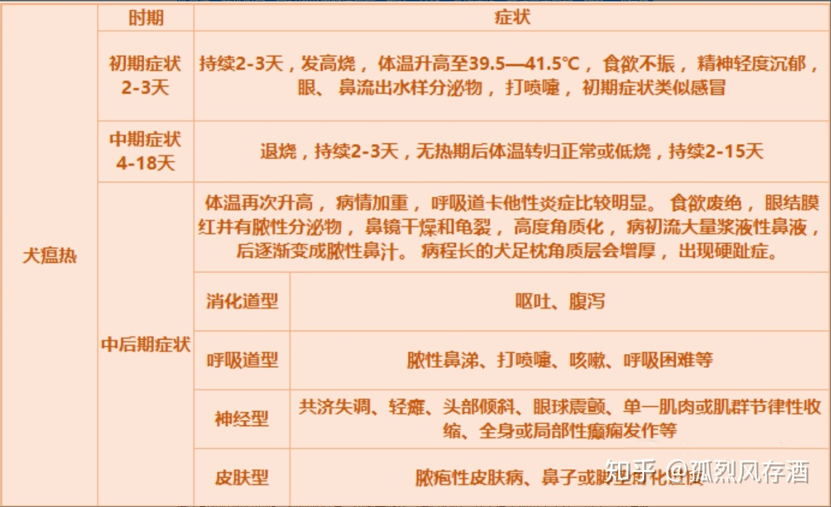 3、2~14天内发展至犬瘟热症状中期再次出现体温升高,咳嗽、有脓性鼻涕、脓性眼屎。同时继发胃肠道疾病、呕吐、拉稀、食欲废绝、精神高度沉郁、嗜睡。