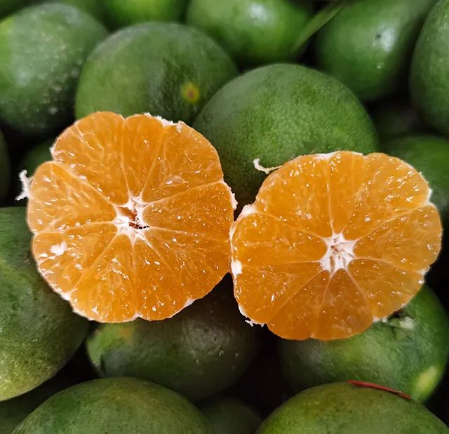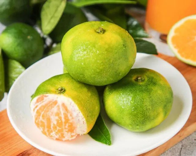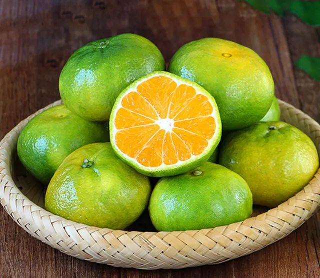 虽然青绿,却不是没成熟,表皮青色是正常的,蜜桔成熟后颜色会由青变黄,属于正常现象,可以放心食用