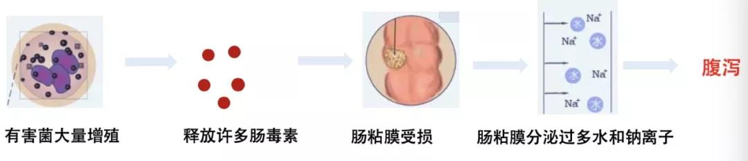 肠态紊乱与腹泻密切相关。以夏季常见的细菌感染型腹泻为例,当有害菌在肠道内大量增殖,会释放许多肠毒素,导致肠粘膜病变,肠粘膜分泌过多的水和钠离子,引起腹泻。