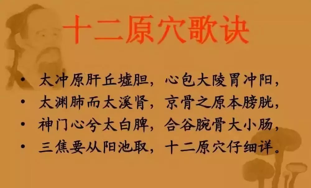 原,含本原、真元之义。原气来源于脐下肾间,是人体生命的本源,是维持生命活动最基本的动力。原气通过三焦运行于五脏六腑,通达头身四肢,是十二经脉维持正常生理功能的根本。因此脏腑发生疾病时,就会反映到相应的原穴上来,通过原穴的各种异常变化,又可推知脏腑的盛衰。由此可见原穴在人体的重要性。