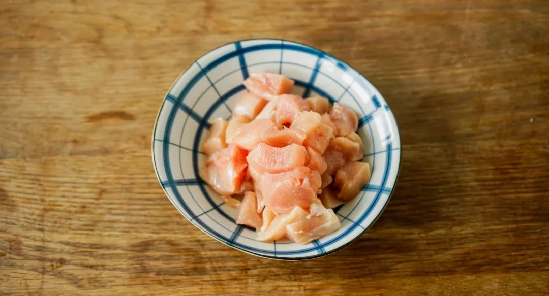 鸡胸肉切成均匀的小块。