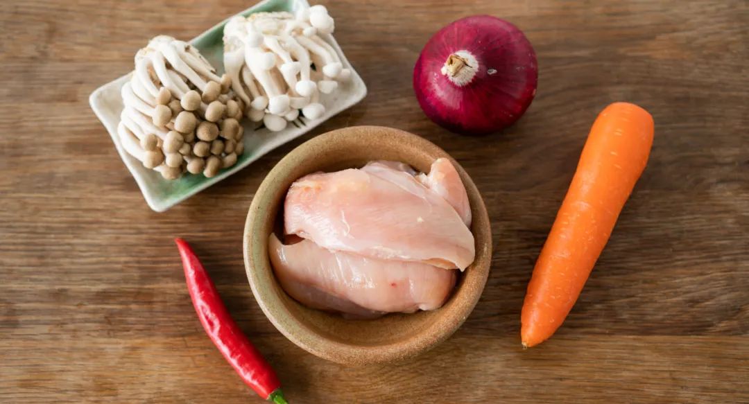 鸡胸肉 300g / 玉米淀粉 50g / 菌菇 2包