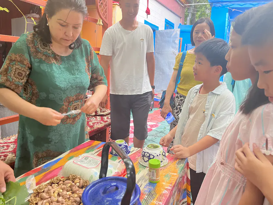 走进维吾尔族人家庭院参观,在主人家享用新疆特色的下午茶点,欣赏维吾尔族的舞蹈和音乐,听主人介绍家庭成员及自家历史,了解少数民族生产生活习俗。