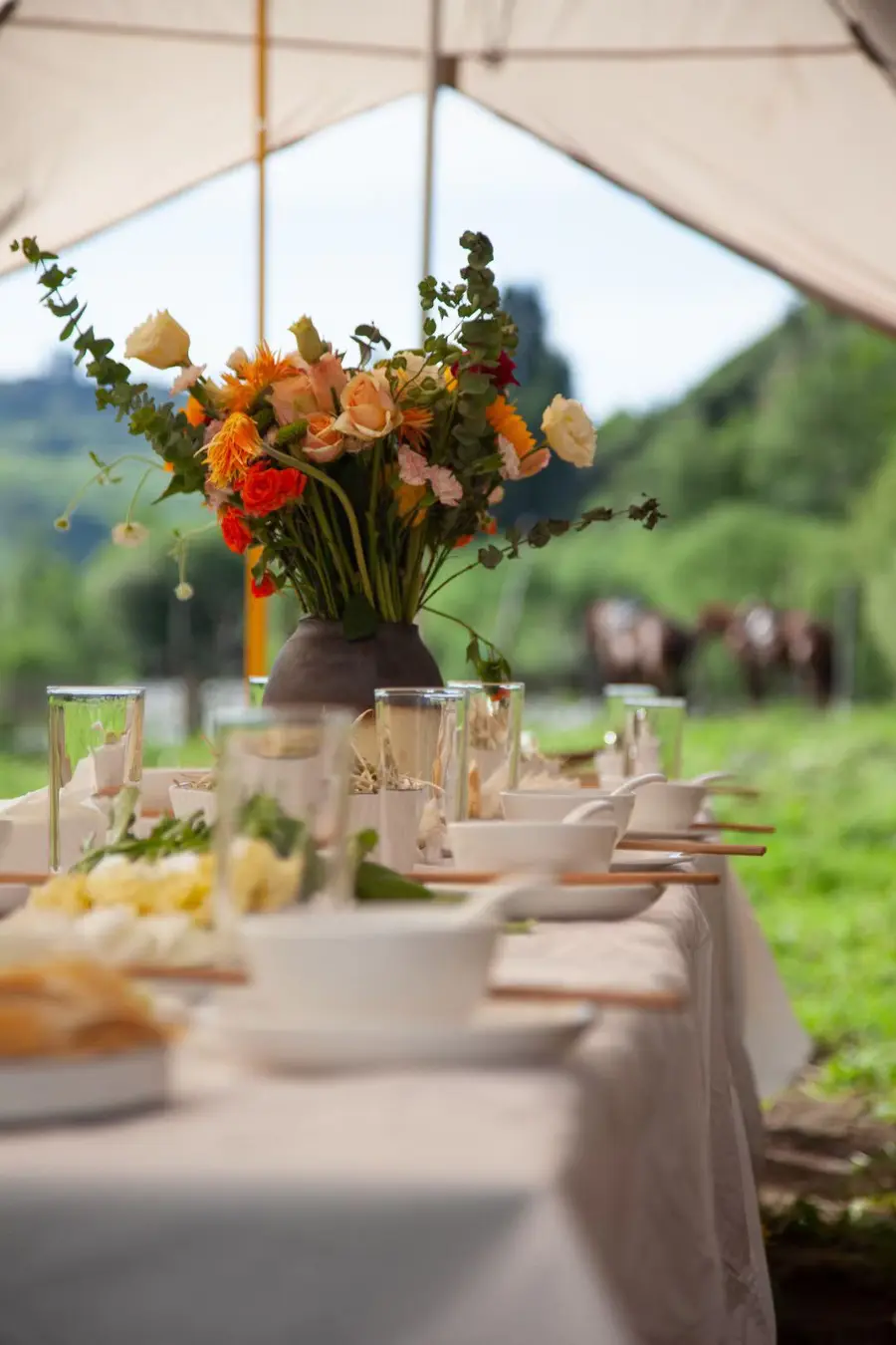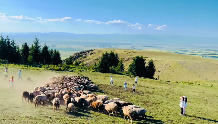 野骑的终点,是我们精心准备的野餐下午茶。孩子们追赶羊群,家长坐在天幕下,看着远处的雪山云杉,慢享天山牧场自然静谧的一个下午。