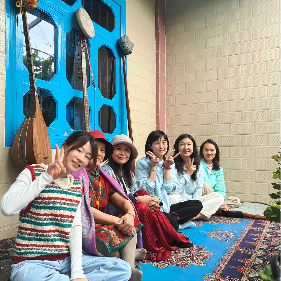 酒店早餐后,我们来到极具少数民族传统庭院风格的西地客小院里,边享受美食边听一场由伊犁师范大学的专家团队分享的《伊犁之于中国》课程: