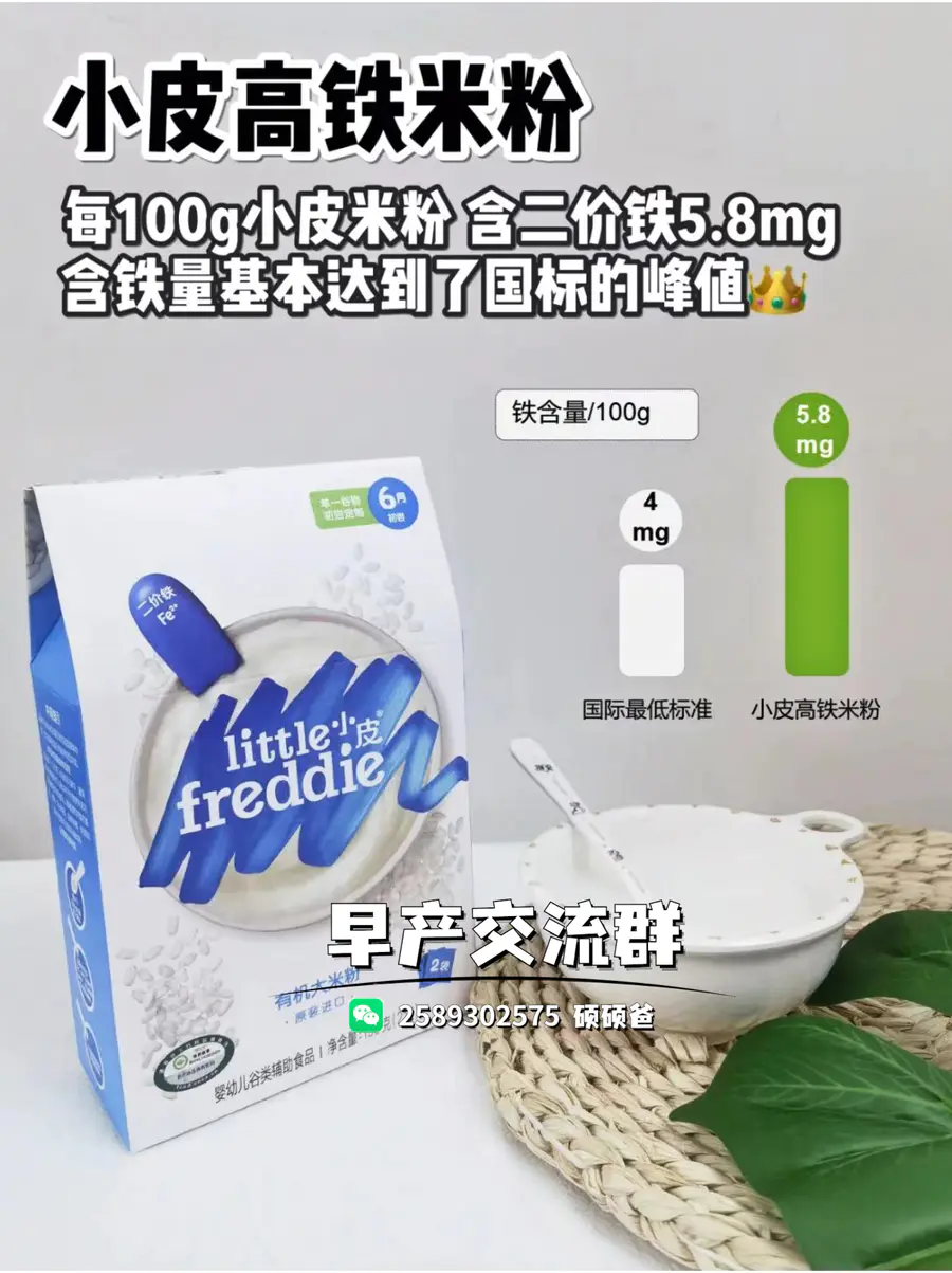 (1)高铁米粉:要注意铁含量是否充足,是否是二价铁。一般建议选择高含量的二价铁配方,如富马酸亚铁,相对三价铁更容易吸收