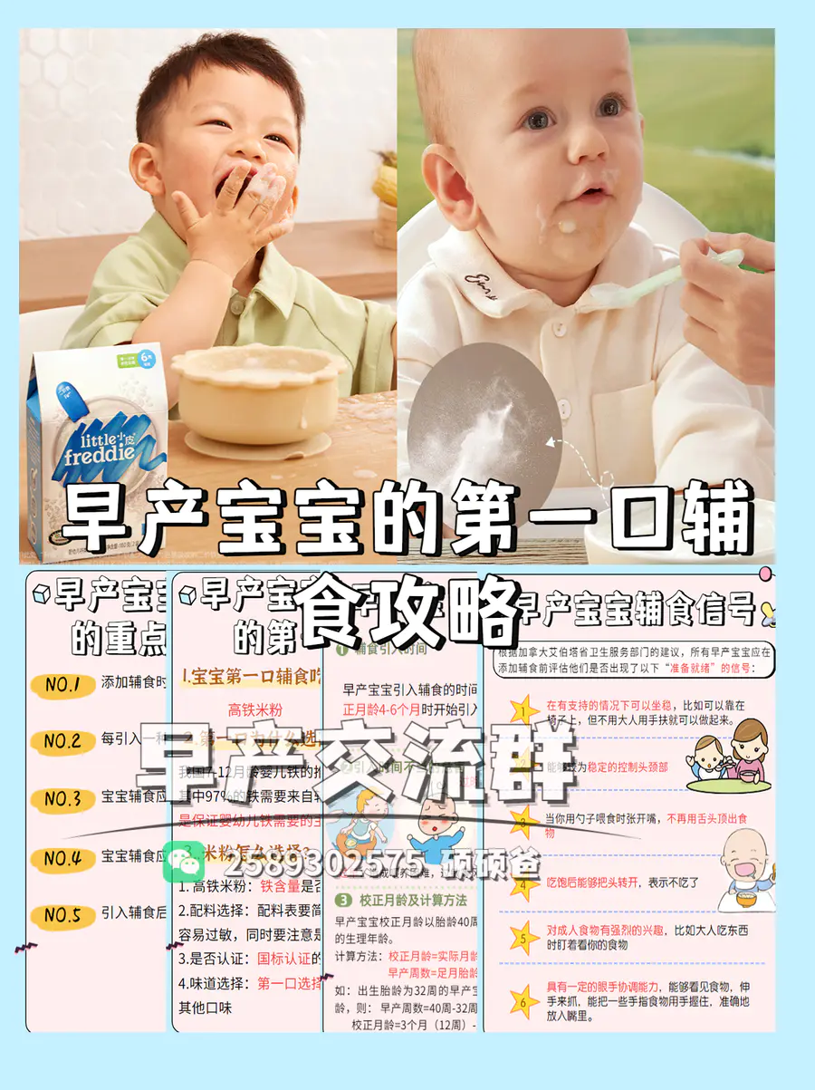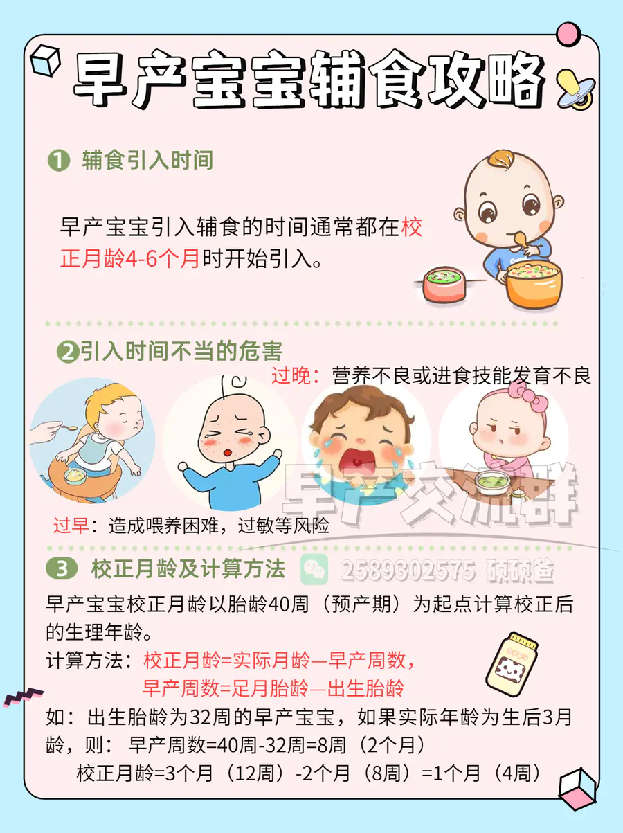 早产宝宝通常在校正月龄4-6个月时开始引入。由于早产宝宝的个体情况不同,建议在医生的指导下选择添加辅食的时间。