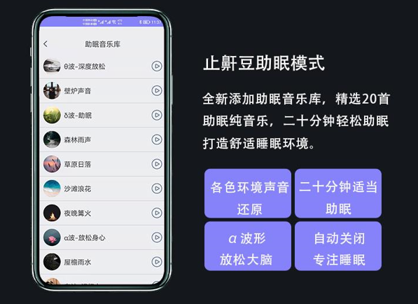有时候在公司午休,鼾声震天真的很尴尬,现在戴上它,也能轻松无负担的入睡了~搭配专属APP,还能监测自己晚上的睡眠质量,以及止鼾次数,效果实实在在看得见。它还会替你分析跟踪近 30 天的打鼾数据,帮你更好的了解自己的打鼾情况和睡眠质量。而且睡觉的时候,还可以选择助眠模式,搭配睡眠音乐,让自己更好的入睡。