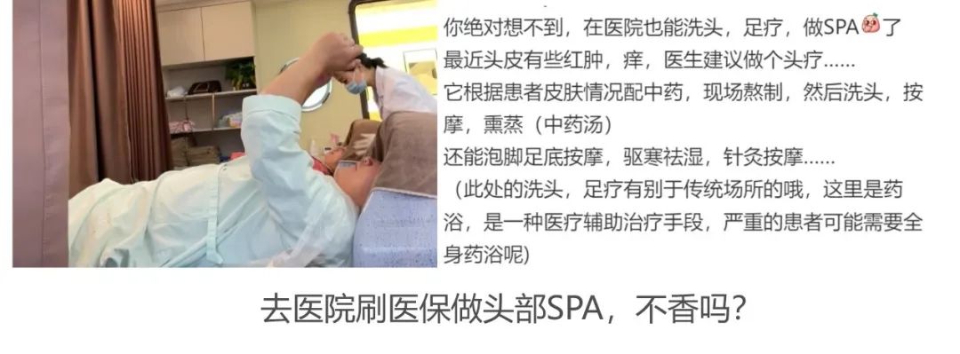 还有一些美容、美体、美发、按摩机构将头疗融入美容服务,强调头皮与面部抗衰关联,通过按摩促进头皮血液循环,增加面部氧气、营养供应,促进新陈代谢,宣称"一次头疗=六次面部护理"等观点,达到引流或者增强用户粘性的目的。