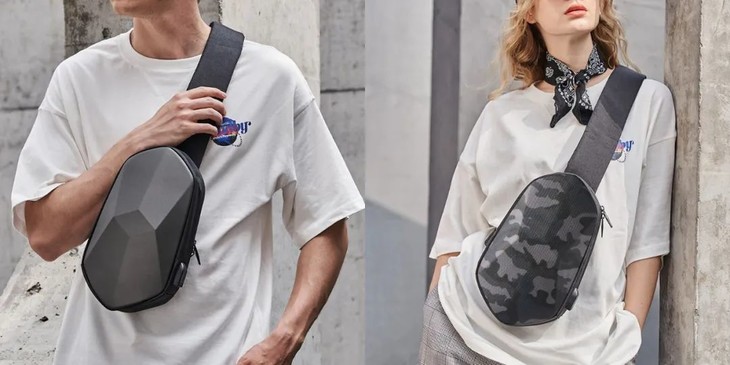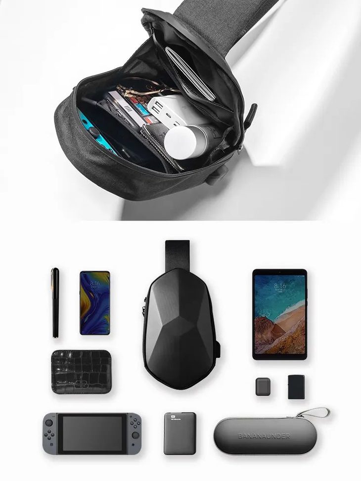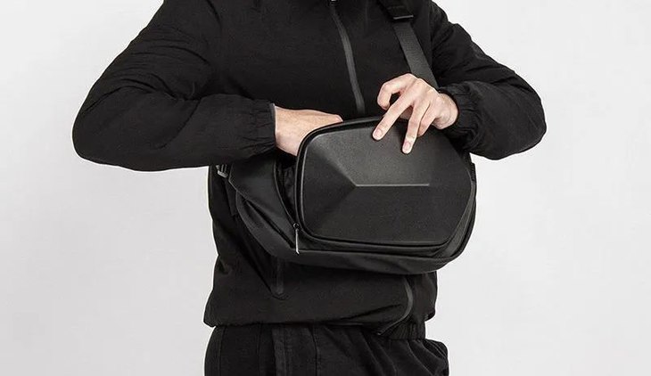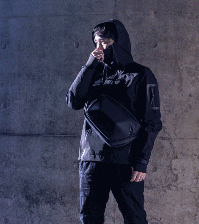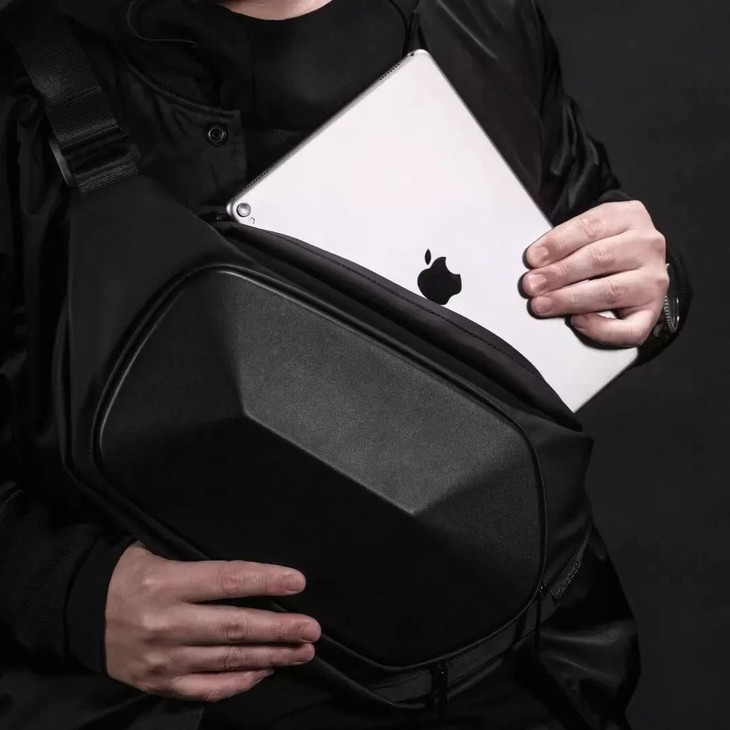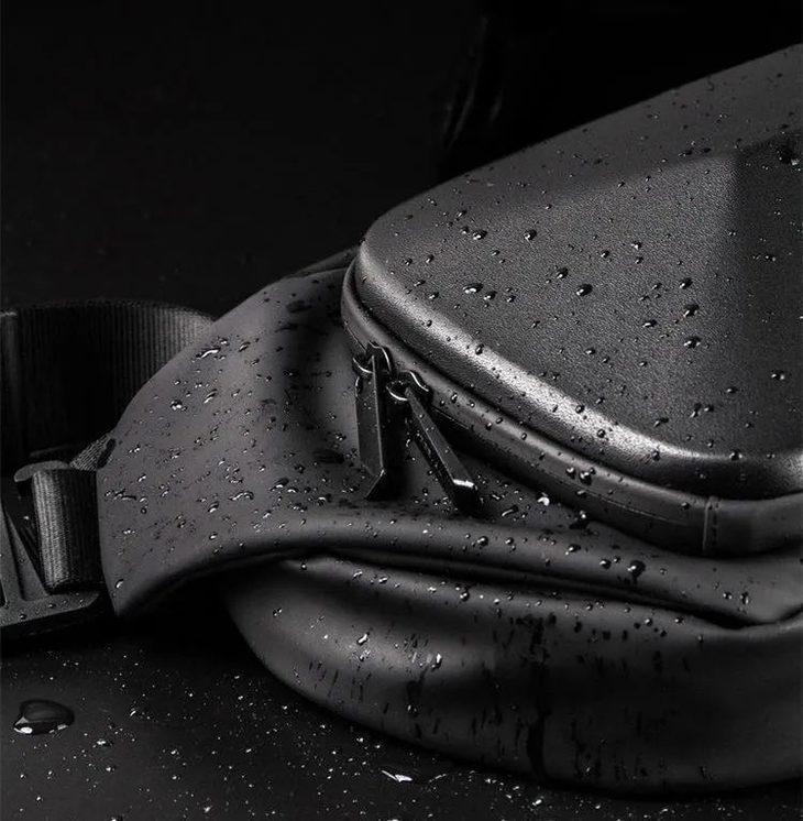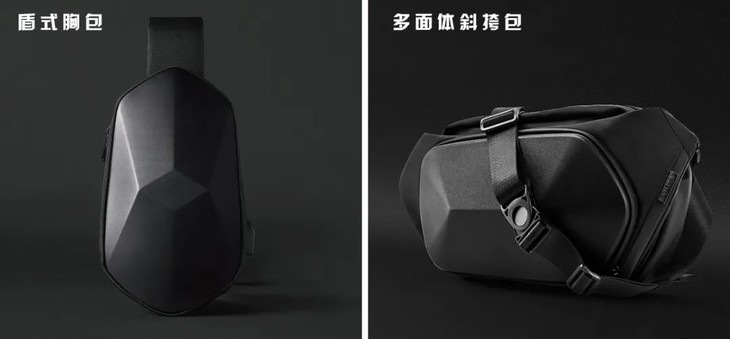 和前面介绍的多面体斜挎包一样,盾式胸包同样拥有帅气的立体切割面,和超强的“防水、防撞、防盗”性能。