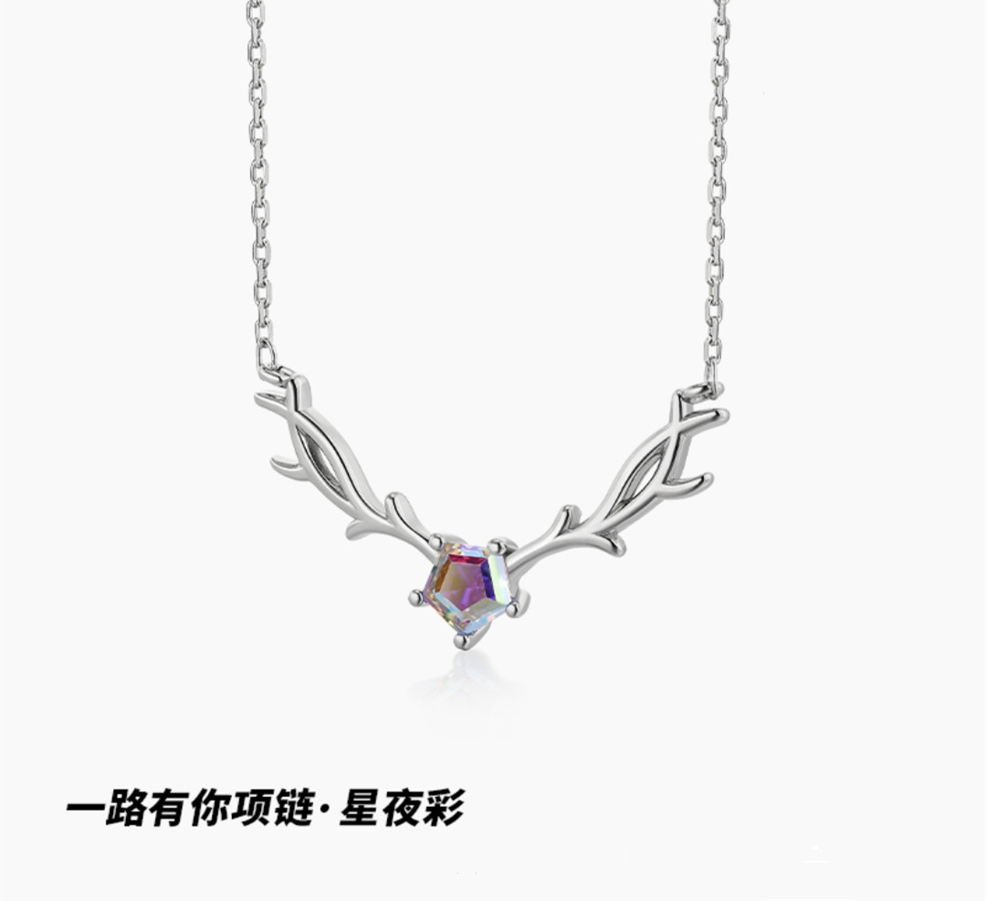 爆款中的王炸限量版——星耀之鹿星夜彩项链,其梦幻荧光的蓝紫色锆石,犹如神秘的宇宙星夜,焕发着让人沉醉的光芒!幻夜星空,总有一颗星星给你的梦境增添一抹神秘柔情!
