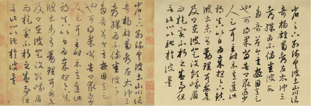 晋 王羲之 游目帖:左 王羲之原帖,右张卫东临帖