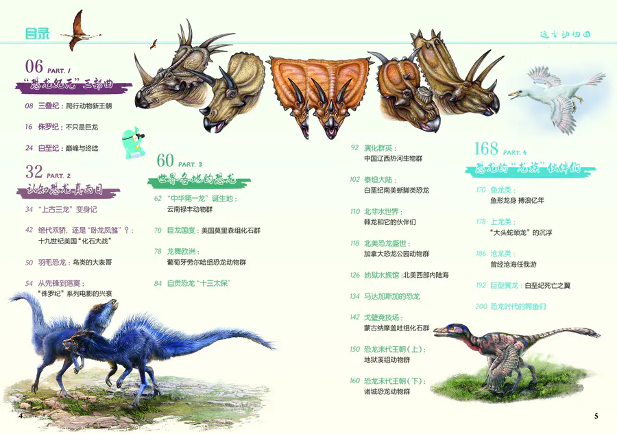 通过本增刊,你还能看到人类两百年来对恐龙的认知变迁,以及翼龙、鱼龙、蛇颈龙、沧龙、鳄类等与恐龙同时代的“龙族伙伴”。